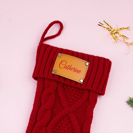 Personalized Christmas Stockings with Names, Large 7” Knit Xmas Stockings with Leather Nameplate for Family, Set of 3, Custom Christmas Decorations for Fireplace, Front Door, and Tree Laser Leather Label Knitted Christmas Socks