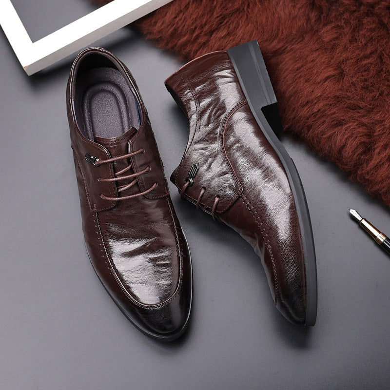 Printempa komerco formalaj viraj ledaj ŝuoj Viraj pinta kapo brita navedanto unua tavola ŝaffelaj ŝuoj fabriko pogranda