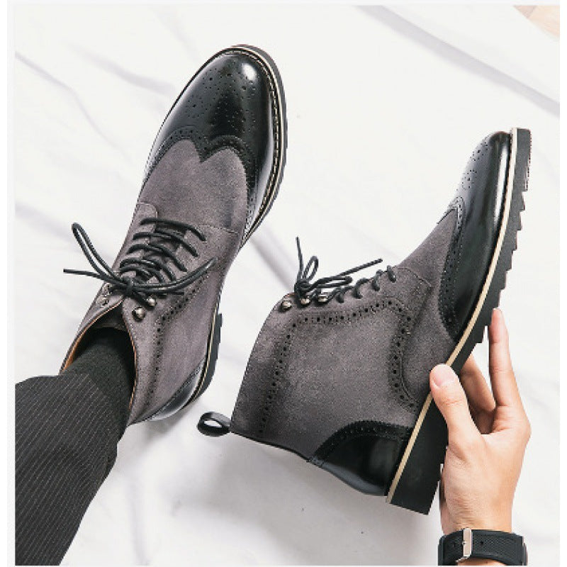Viraj Komercaj Anglaj Casualaj Ledaj Ŝuoj Pintaj Ledaj Botoj Ĉizitaj Alta Supro Martin Maleolaj Botoj Frostita Viraj Ŝuoj