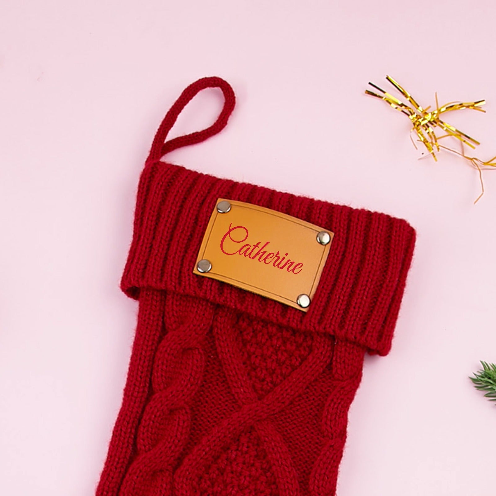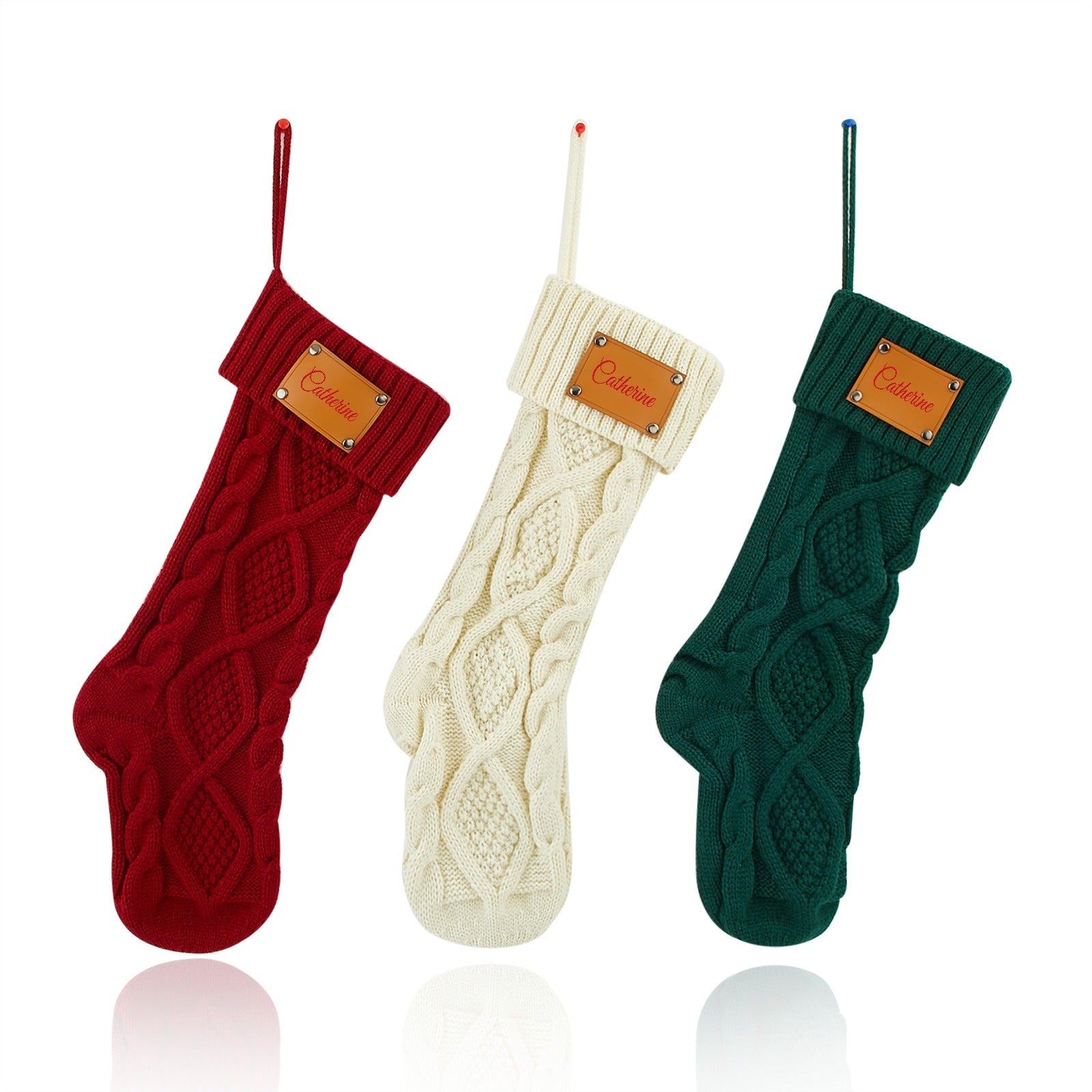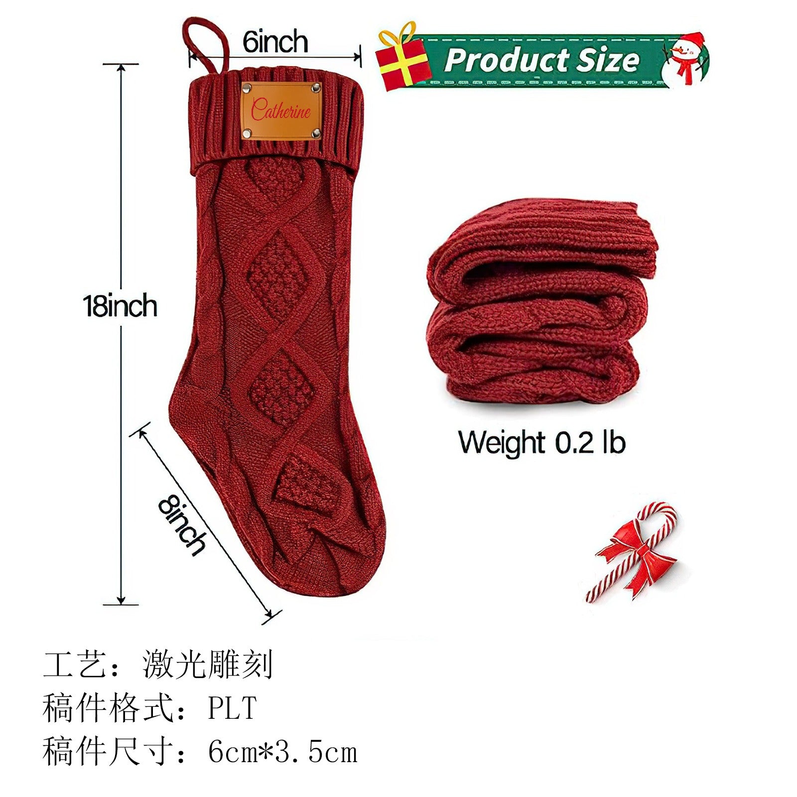 Personigitaj Kristnaskaj Ŝtrumpetoj kun Nomoj, Grandaj 7” Trikitaj Kristnaskaj Ŝtrumpetoj kun Leda Nomplato por Familio, Aro de 3, Propraj Kristnaskaj Dekoracioj por Kameno, Antaŭpordo kaj Arba Lasera Ledo-Etikedo Trikitaj Kristnaskaj Ŝtrumpetoj